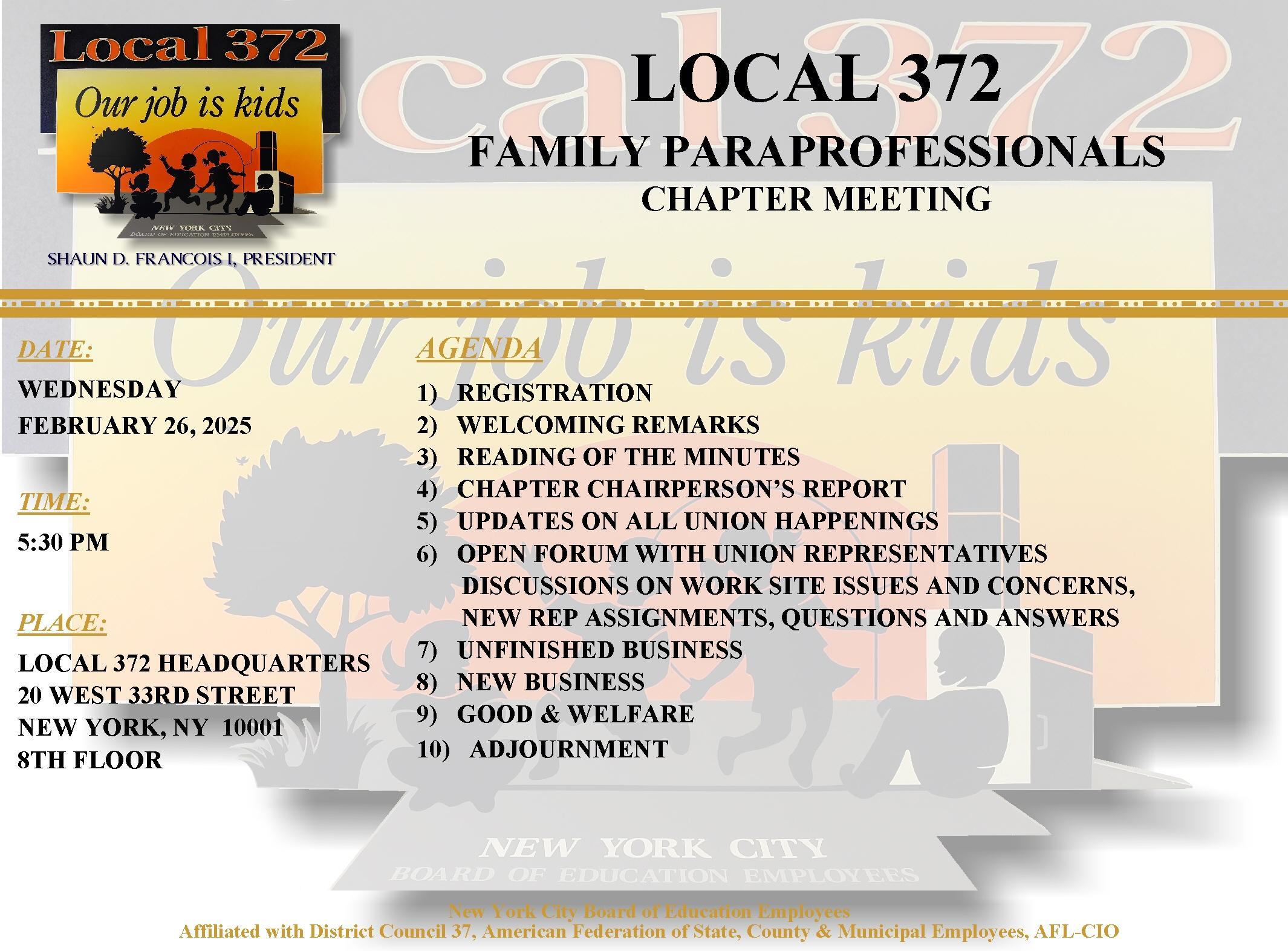 Local 372 Paraprofessionals Chapter Meeting