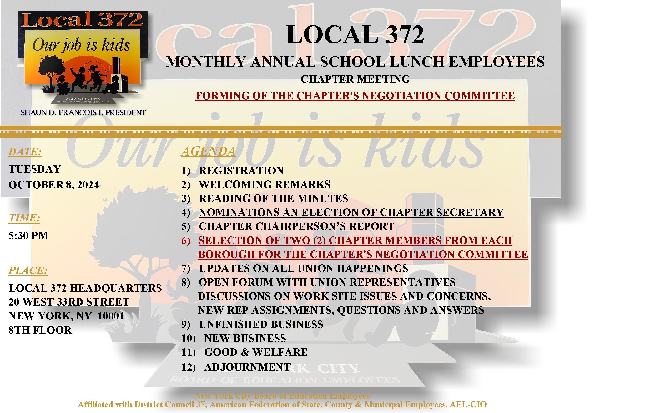 MONTHLY ANNUAL SCHOOL LUNCH EMPLOYEES CHAPTER MEETING